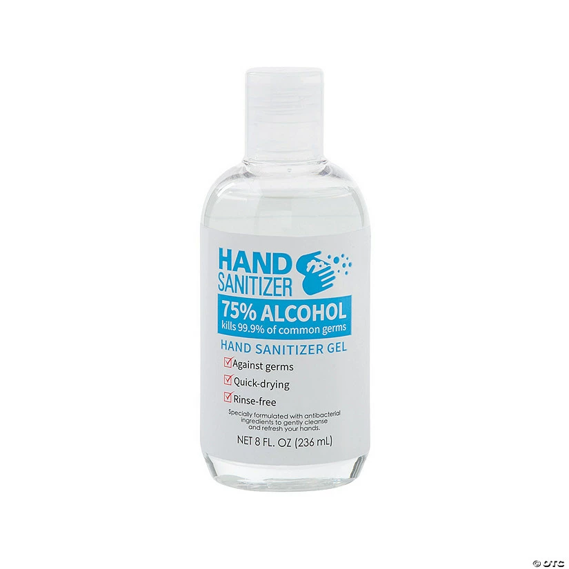 Available in a convenient 4-pack, these hand sanitizer gel bottles will keep you stocked up. Quick drying and rinse-free, these 8-oz. bottles are perfect for placing in common spaces. Formulated with antibacterial ingredients, this gel sanitizer gently cleanses and refreshes your hands. Plastic bottles. (4 pcs. per unit) 2″ x 5 1/2″ 8 oz.โข Gelโข Alcohol (ethanol) (75% volume/volume (v/v)) in an aqueous solution denatured according to Alcohol and Tobacco Tax and Trade Bureau regulations in 27 CFR part 20.โข Glycerol (1.45% v/v).โข Purified water.โข Denatonium benzoate.โข Includes fragrance.