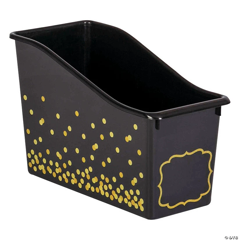 Store everything from books and binders to folders, magazines and journals! A chic and stylish addition to classroom storage, this book bin doubles as dรฉcor with its black and gold confetti design. For convenient labeling and easy cleaning, this must-have for classroom organization features a write-on/wipe-off surface. Plastic. 11 1/2″ x 5 1/2″ x 7 1/2″ ยฉ 2019 Teacher Created Resources. All Rights Reserved.