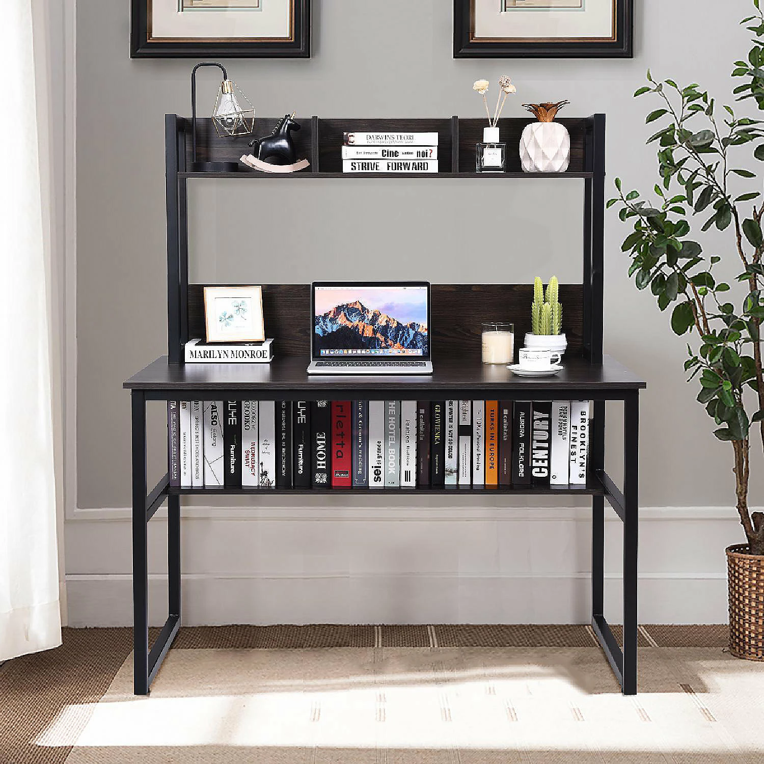 This computer desk is designed with a big desktop and two storage layers for which you will have a sufficient space to place office supplies. As it is made of P2 environmental material, there will be no worry about healthy problem. With the divider and back baffle design, it provides an easy way to make the desktop well organized and prevent items from falling. And the simple and fashionable design makes it easy to match rooms of all styles. Do not hesitate to purchase. SpecificationColor: Brown