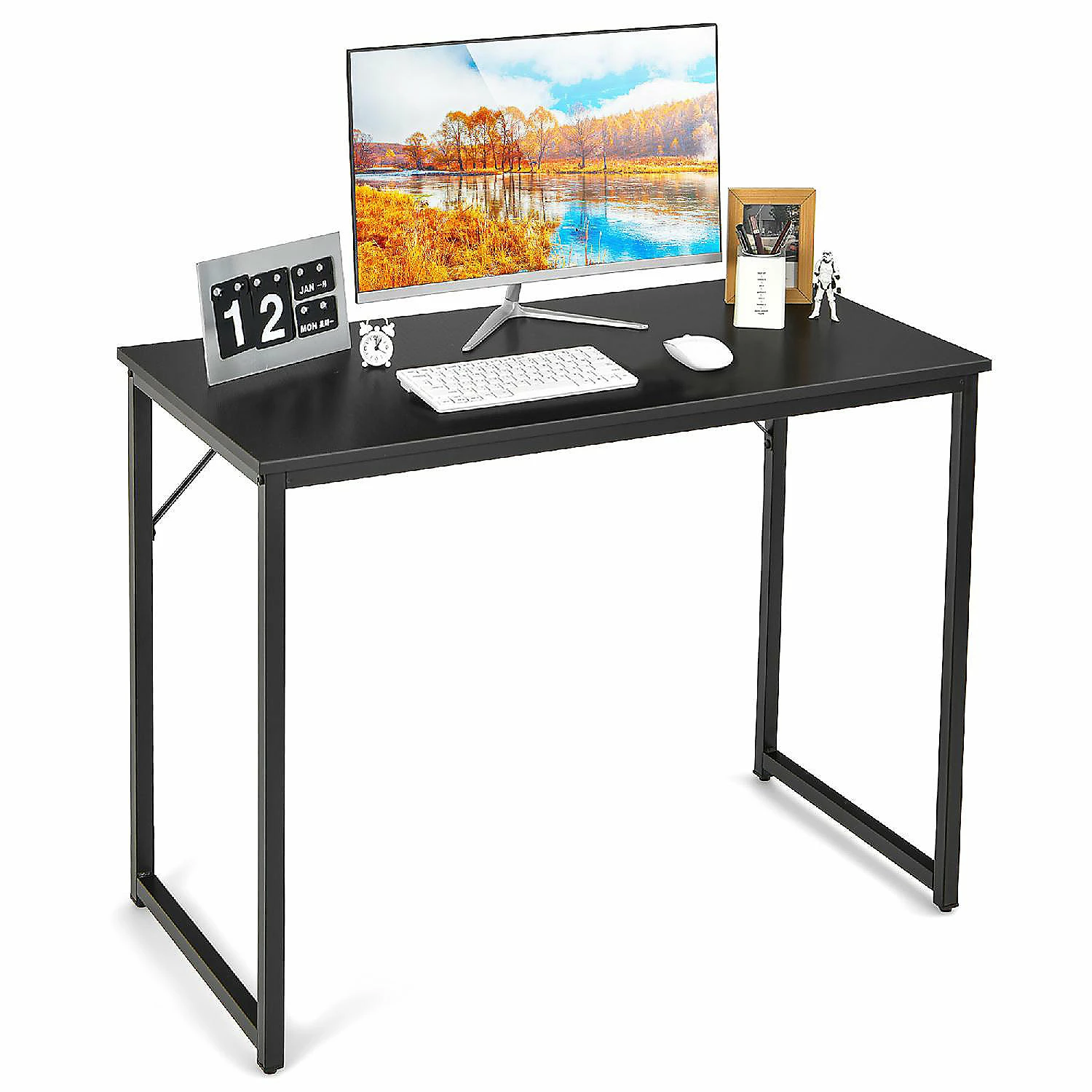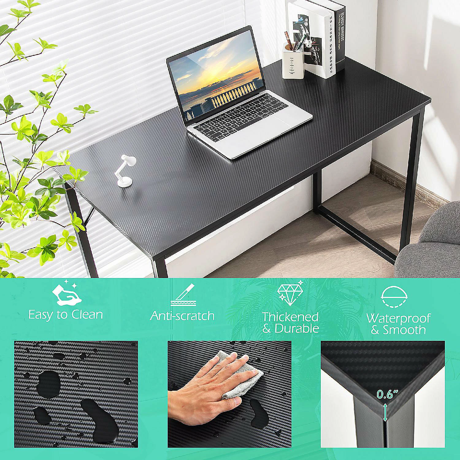 With a large desktop, the office desk provides rich room for book, lamp, plant, laptop and decoration, keeping them in a neat arrangement. You can relax your legs and feet comfortably due to the spacious underneath space. Constructed by thickened MDF board and reinforced steel frame, the writing desk gives office supplies additional support for stable and safe placement. The adjustable foot pads avoid scratching on the floor and enhance stability. This versatile desk can be used for work and study. SpecificationColor: Black
