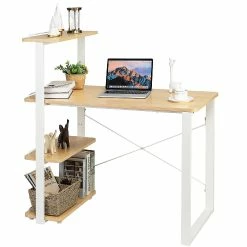 Still bothering finding the proper computer desk for comfy studying or working? This multi level computer table wonโt let you down. Constructed of 0.6โ thick engineered wood board with sturdy metal frame, this stylish desk combines modern appear and industrial quality to ensure stability and large weight capacity(table top:80lbs, per shelf:15lbs).The large bottom compartment can easily accommodate standard size computer host, protects PC host from dust and humidity. This desk with bookshelves makes it a perfect addition to any office or work space and brings you ergonomic comfort during studying, working or gaming.SpecificationColor: Natural