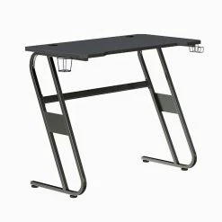 Add personality to your gaming setup with this ergonomic gaming desk with sleek black frame. For excitable players, this game station has a cup holder to prevent accidental spills. For those that game at home or are professional game testers in an office, gaming desks and chairs are essential for daily gamers. The multi-function workstation powers you through game sessions and work demands on a sturdy z-shape frame. Reduce clutter on the worksurface by feeding cords through the two provided grommets. Always know where your headset is by placing on the headset hook in between games. Upgrade the gamer or salesman in your home or office with this computer gaming desk. Complete your gaming setup with our Gaming Chair Racing Office Ergonomic Computer PC Chairs.