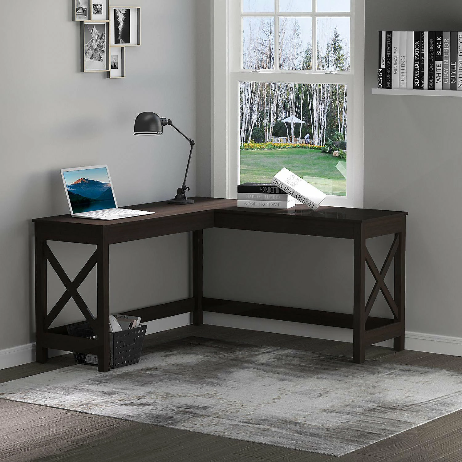 Hot Sale ๐ HOMCOM 57″ L Shaped Corner Desk Computer Home Office Desk and Writing Table Brown Wood Grain ๐ฏ
