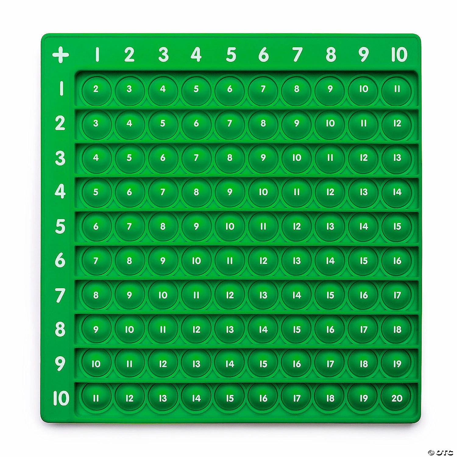Learn addition facts to twenty with this durable “pop and learn” addition board. Addends one to ten are represented on both the vertical and horizontal axes with the correct sum presented in the corresponding bubble. Pop bubbles as you practice and solve the equation. Bubbles on the reserve side are blank and can be used for creating visual addition examples. Special Shipping Information: This item ships separately from other items in your order. This item cannot ship to a P.O. Box. This item may be subject to additional processing days. Item is not eligible for expedited shipping. You may initiate a return for unused items within 30 days, if the items are in original packaging with all original materials included with the shipment.