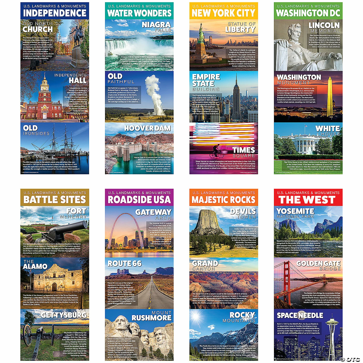 Wholesale 😉 United States Landmarks & Monuments Poster Set – 8 Pc. 😀