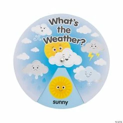 These fun weather wheels will turn ordinary students into professional meteorologists! These science activity wheels are a great educational tool for the classroom or daycare to help kids identify and learn about the different types of weather. Peek outside. Whatโs the weather? Is it raining or windy? Kids will love using these essential classroom supplies! Cardstock with metal brad. 7″ diam. ยฉ OTC